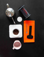 Weigh 18 grams of coffee and grind on medium-fine setting, slightly finer than a pour-over.